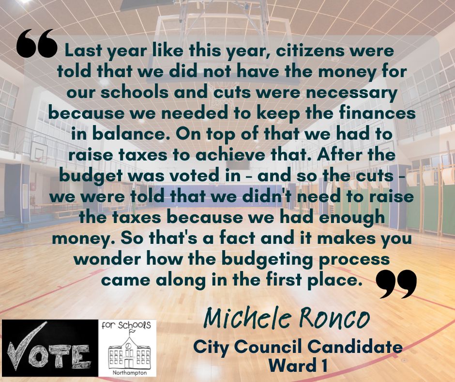 Video Clip – At the April 10, 2025 School Committee meeting, Michele Ronco states that last year, like this year, residents were told there was not enough funding for schools because it was important to balance city finances