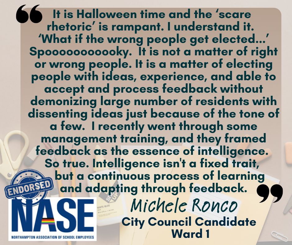 “There are challenges. There’s an environment around us. We don’t know how the economy is going to be, how much money. And I would say that – as a parent – I would tell you that it takes a village to raise a child. And as an engineer, a manager, and a former city councilor – I will tell you it takes a village to raise a child. So here is the village. So how are we going to do it? How are we going to do things differently? This: a conversation where we get together – and it is not any more lecturing of the voters that ‘we know better for you’ – and you hear from the city council ‘oh but I don’t like your tone’
